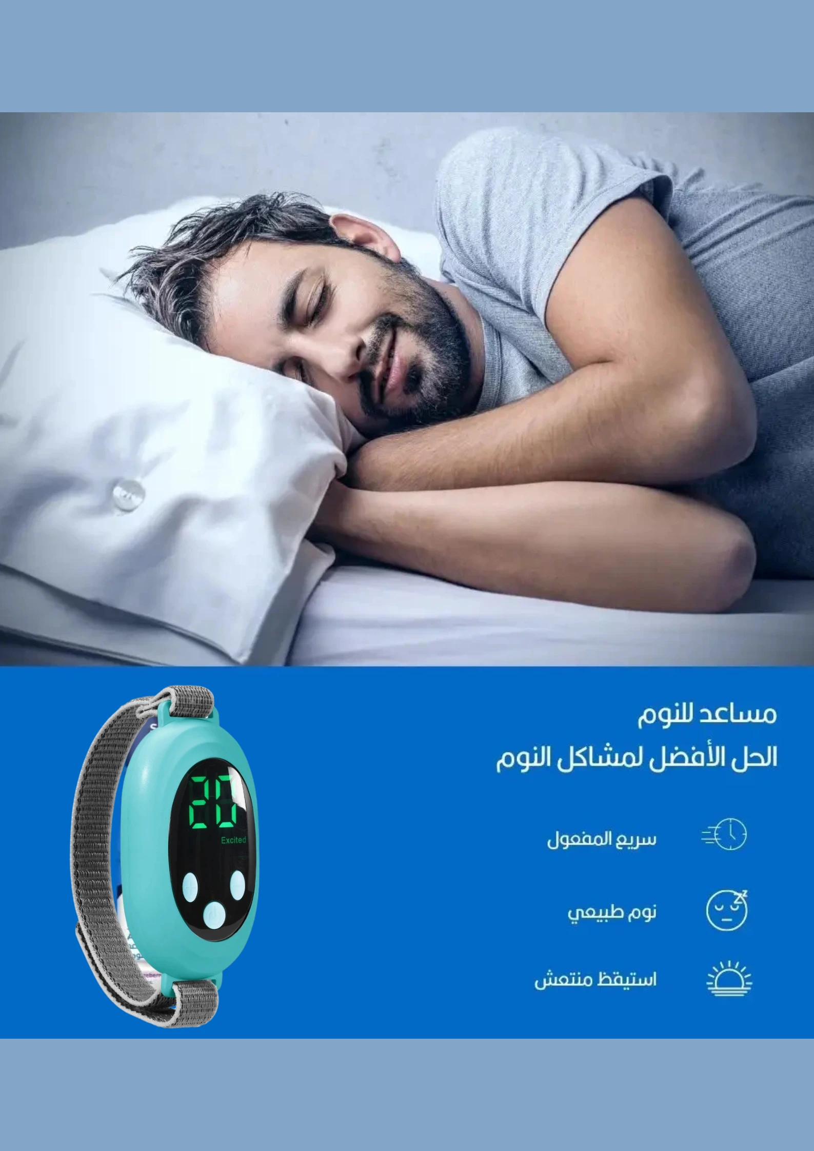 جهاز مساعدة على النوم يعمل بتقنية النبضات الكهربائية يتم ارتداؤه حول المعصم ويهدف إلى تحسين جودة النوم وتقليل التوتر والقلق.